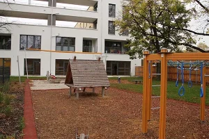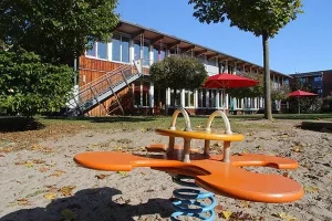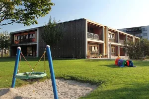 Ideal für vielfältige Naturbegegnungen liegt unser Kinderhaus, gegenüber einem Wald mit Schwanenweiher. Es ist konzipiert für 50 Kindergartenkinder und 12 Krippenkinder. Auch unser Spielbereich mit Jurastein-Wasserlauf, Mehrzweck-Kletterturm und Vogelnest-Schaukel ist ganz auf die Agilität der Kinder ausgerichtet. In drei Gruppen lässt sich der fürsorgliche und hilfsbereite Umgang miteinander spielerisch fördern. Die Kinder werden zu Spielkameraden und Freunden.