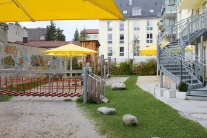 Hell und modern präsentiert sich unser „Isoldenhof“ mit großzügigem Außengelände mitten im beliebten Stadtteil Schwabing. Dort finden 100 Kinder im Alter von 3 bis 10 Jahren in drei Kindergartengruppen und einer Hortgruppe ganztägige Betreuung in einem offenen Konzept. Durch den Erfahrungsaustausch mit Kindern ganz unterschiedlichen Alters entwickeln sich unsere Schützlinge schnell zu selbstbewussten, eigenständigen Persönlichkeiten. Wir unterstützen sie dabei ganz behutsam.