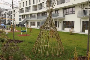 Offen, großzügig, modern, grün präsentiert sich unsere Krippe im Mildred-Scheel-Bogen im Stadtteil Schwabing. Ausprobieren, lernen, sich entfalten sind unsere Leitlinien in der Betreuung unserer 72 Kinder im Alter von neun Wochen bis drei Jahren. In sechs Gruppen auf zwei Etagen arbeiten wir im teiloffenen Konzept. Der Isoldenhof ist ein Ort der Begegnung auch für die Eltern, die eine partnerschaftliche Rolle in unserem pädagogischen Konzept spielen.